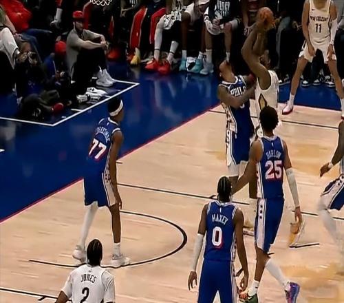 今天的比赛,开局阶段庄神看到鹈鹕首发中锋是老态龙钟的小乔丹,表现很活跃,想拿捏老将,一上来就二次进攻补篮得手,76人打出8-0开局。但随后小乔丹予以回应,连续保护篮板后,送给马克西一记排球大帽,用防守带动气势。由于有了小乔丹的篮板保护,锡安和普尔今天可以放开攻击了,两人状态也都很好,所以鹈鹕很快完成了反超。