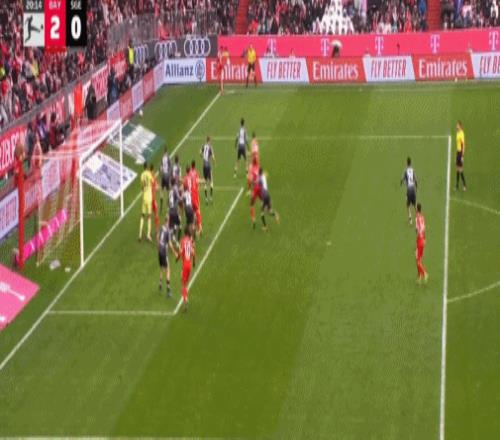 第90+4分钟,拜仁差点连丢三球,格策射门稍稍高出