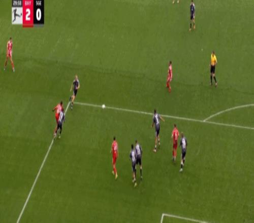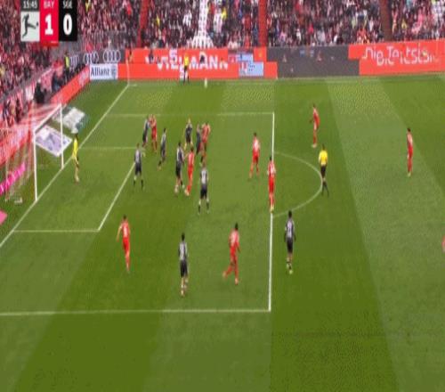 第16分钟,帕夫洛维奇抽射,桑托斯扑救失误,拜仁1-0法兰克福