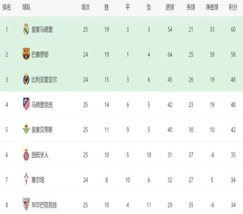 北京时间2月22日,西甲第25轮率先结束了5场比赛,我们看看最新积分榜变动,主要的信息是:皇马1-2爆冷不敌奥萨苏纳...