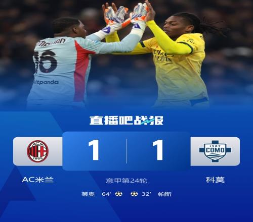 距榜首7分米兰11科莫24轮不败莱奥吊射迈尼昂送礼阿莱格里染红