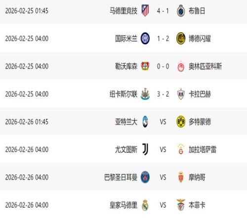 这一夜,除了国米之外,纽卡斯尔、勒沃库森和马竞3支强队,都顺利过关晋级16强。其中马竞在主场4-1大胜布鲁日,并以7-4的总比分淘汰对手,而纽卡斯尔则在主场3-2双杀卡拉巴赫,2回合总比分9-3晋级。随着纽卡斯尔淘汰对手,本赛季欧冠16强,足足有6支英超球队,他们的强势可见一斑。虽然勒沃库森在主场0-0战平奥林匹亚科斯,但是凭借首回合客场2-0的优势,这家德甲劲旅还是顺利晋级。