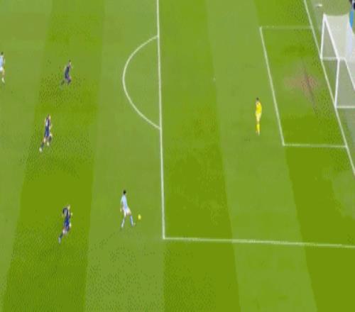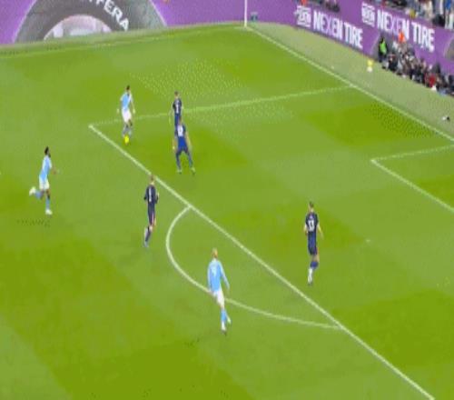 第37分钟,曼城球员B席中路挑传,马尔穆什杀入禁区低平球传中,奥赖利飞身铲射打偏,错失帽子戏法!
